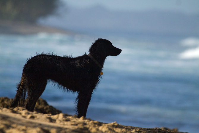 Playa perro, a loyal pup waits for his master to return to the beach